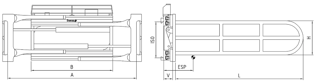 | typ | udźwig kg/mm LC | sugerowany udźwig kg/mm LC | ISO | B mm | zakres otwarcia A wewn. mm | wysokość h mm | długość L mm | V mm | ESP mm | waga kg |