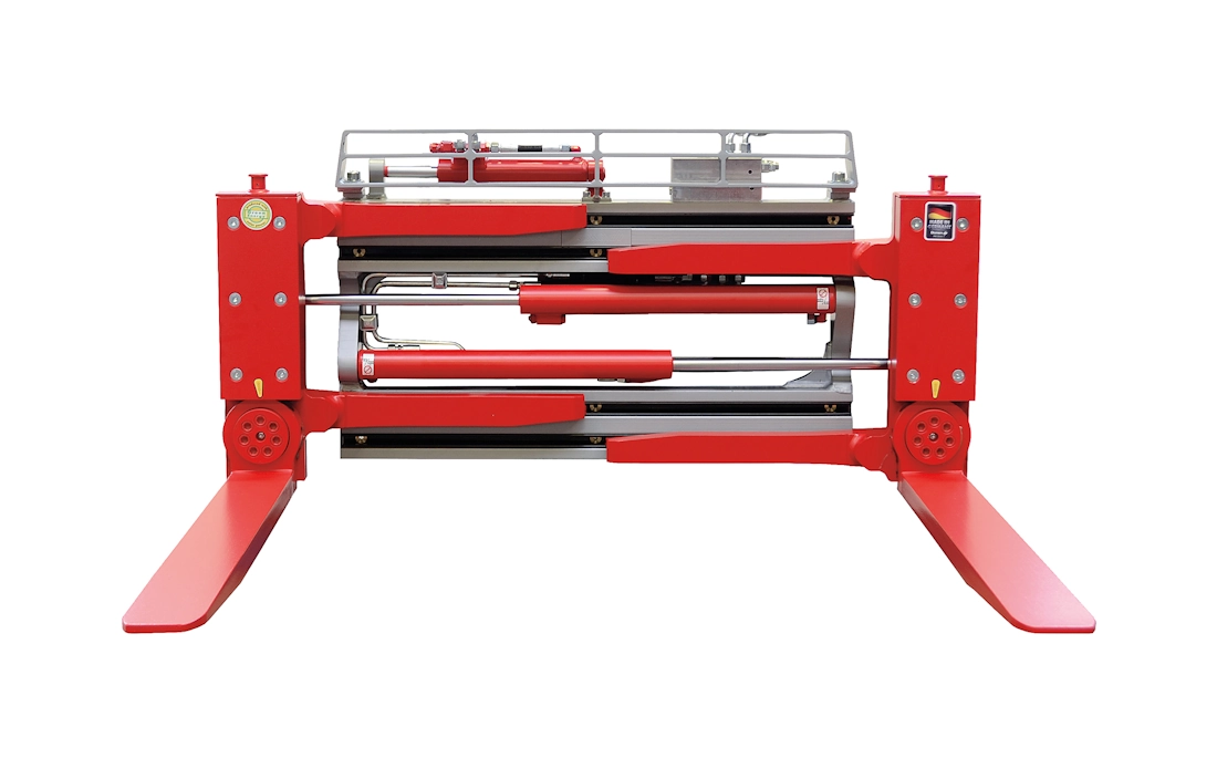 Chwytak z obrotowymi widłami typ DGK-S jest wyposażony w manualnie obracane widły. Dzięki nim, gdy są obrócone o 90°, w pozycji pionowej, chwytak może pobierać ładunki bardzo ciasno poustawiane obok siebie. Jednocześnie z widłami ustawionymi poziomo można tradycyjnie przeprowadzać rozładunek ładunków spaletyzowanych. Nie wolno dociskać ładunków między widłami ustawionymi w pozycji horyzontalnej. Działania związane z dociskaniem ładunku dopuszcza się tylko z widłami obróconymi, poziomo.