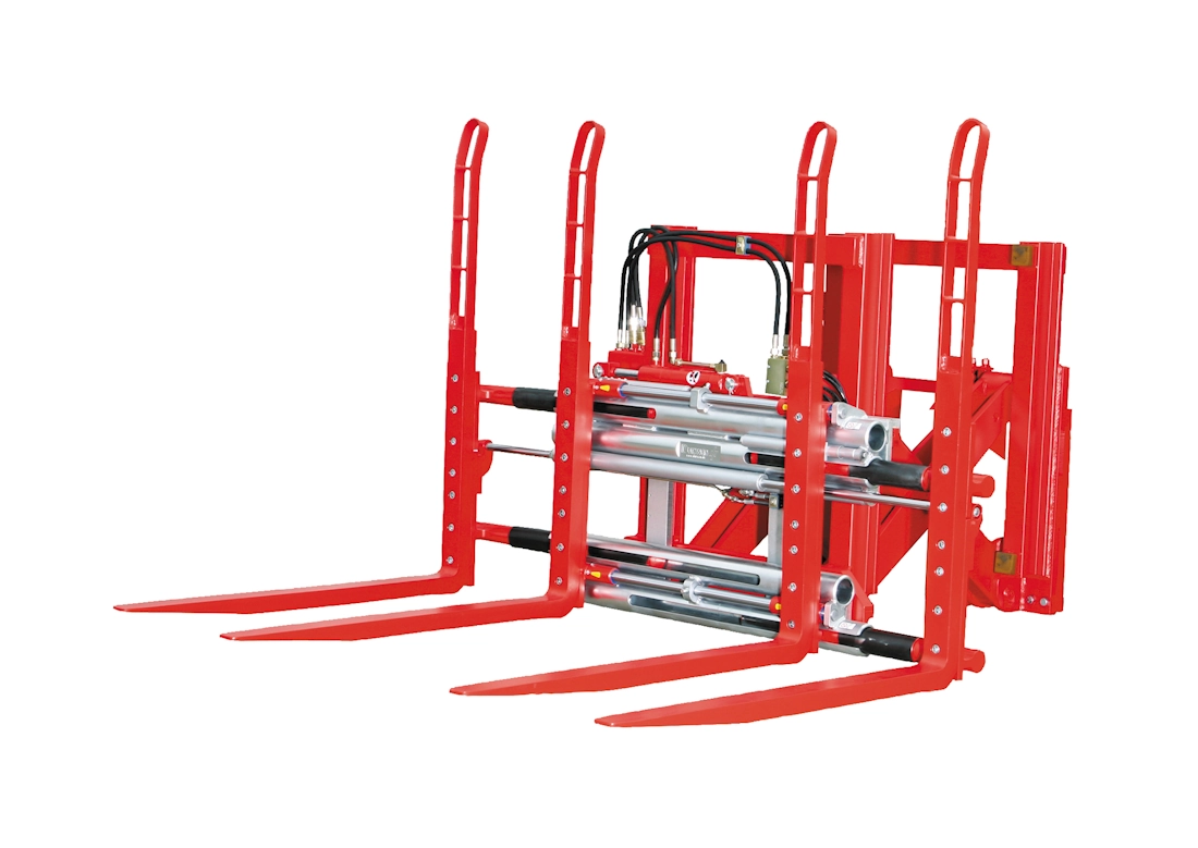 Podwójny paletyzer poprzez hydrauliczne pozycjonowanie wideł może pobierać jedną bądź dwie palety jednocześnie. Rozstaw między…