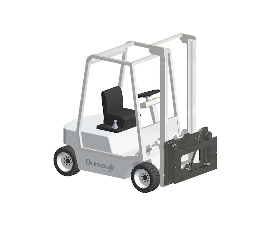 | System szybkiego demontażu z karetką wideł na haku, rama z zawieszoną karetką wideł ISO. Można zamontować zarówno widły ISO jak i osprzęt Durwen. |