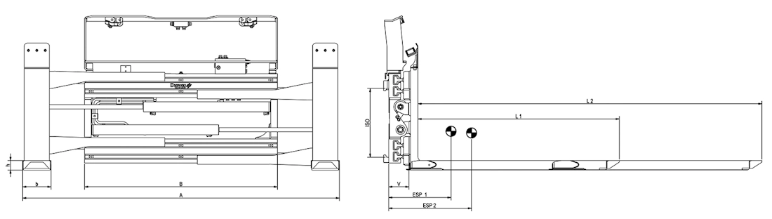 Model ZVP-TGZ to połączenie pozycjonera z widłami teleskopowymi, które umożliwia szybki i redukujący koszty załadunek oraz składowanie zwłaszcza z jednej strony pojazdu. Urządzenie sprawdza się w różnorodnych pracach logistycznych, gdzie obsługujemy towary o różnych niestandardowych rozmiarach oraz towary składowane na paletach różnych rozmiarów. Widły teleskopowe charakteryzuje 100% synchronizacji przy zsuwaniu i wysuwaniu. Dzięki temu, że pozycjoner rozsuwa widły szeroko, poza obrys karetki to urządzenie świetnie sprawdza się przy transporcie szerokich ładunków oraz palet. Urządzenie nie służy do chwytania między widłami. Nakładki wideł w standardzie są wyposażone w dodatkowe listwy manganowe o grubości 2mm w celu wydłużenia żywotności urządzenia, są bowiem bardzo odporne na ścieranie.